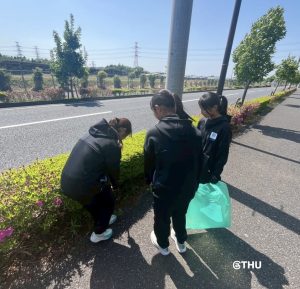今回、学校周辺でクリーン活動を行いました。この活動に初めて参加し、実際に行なってみると、道が少しずつ綺麗になっていくことに達成感がありました。